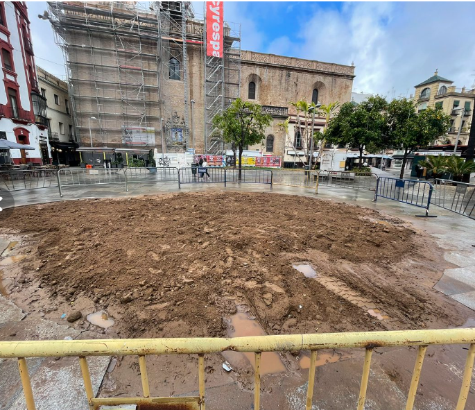 El gran árbol de la imagen anterior ya ha desaparecido porque estorbaba para levantar el pie de una de las Setas, que se extendería hasta la misma plaza