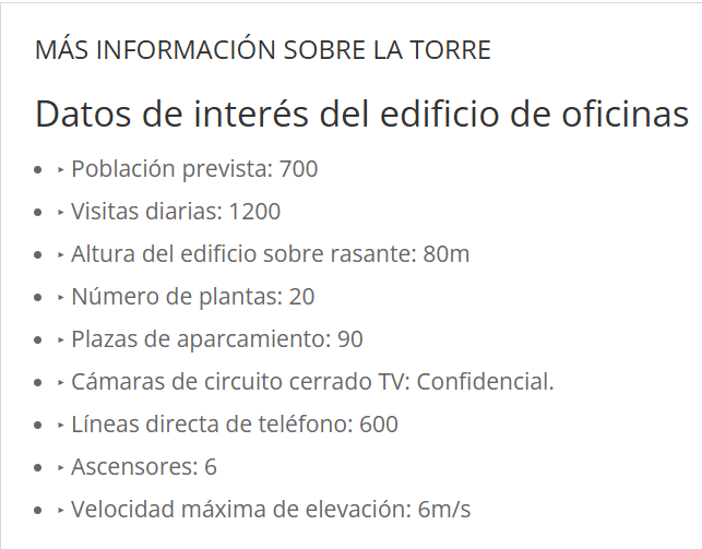 Nota: en relación con el comentario del lector sobre la altura de la torre de Los Remedios, me remito a la página oficial de la empresa gestora de dicho inmueble, http://www.torreremedios.com/, que ofrece los datos que se reflejan a continuación: