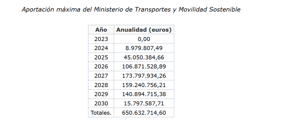 Se modifica la tabla con la distribución de las anualidades que figura en el punto 3 de la cláusula segunda, por la siguiente: