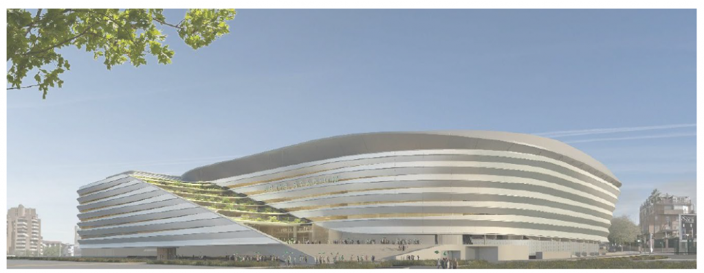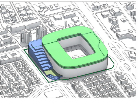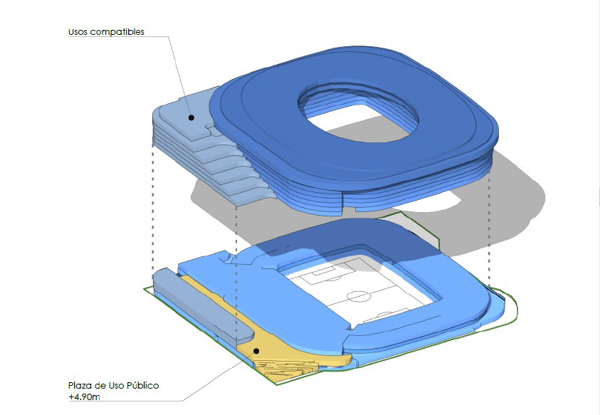 El Betis ocupará con su nuevo estadio más espacio del que tiene su propia parcela, de 34.950 m2, ya que según el estudio de ordenación aprobado de forma inicial por el gobierno del popular José Luis Sanz tiene previsto recurrir a la figura del vuelo arquitectónico, que le permitirá penetrar hasta 6 metros más allá de la vertical de la línea de su terreno una vez que los muros alcancen los cinco metros de altura.