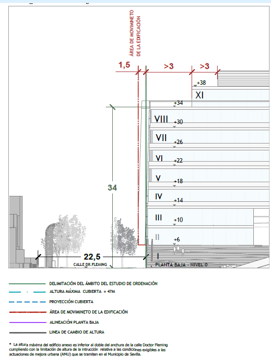 La cota de referencia para las alturas (cota 0.00) será la del punto medio de la calle Doctor Fleming.