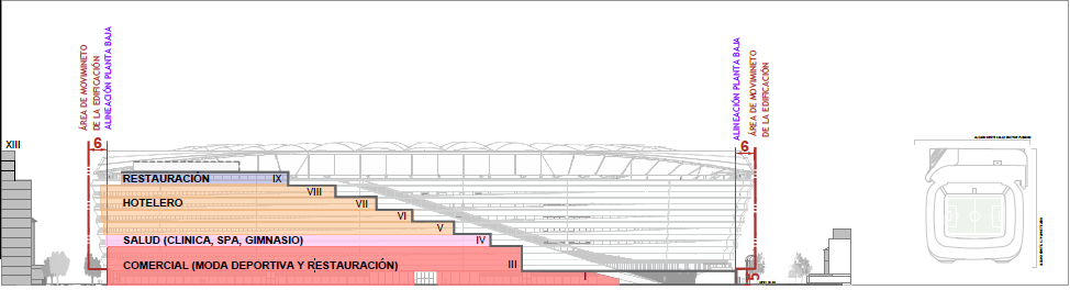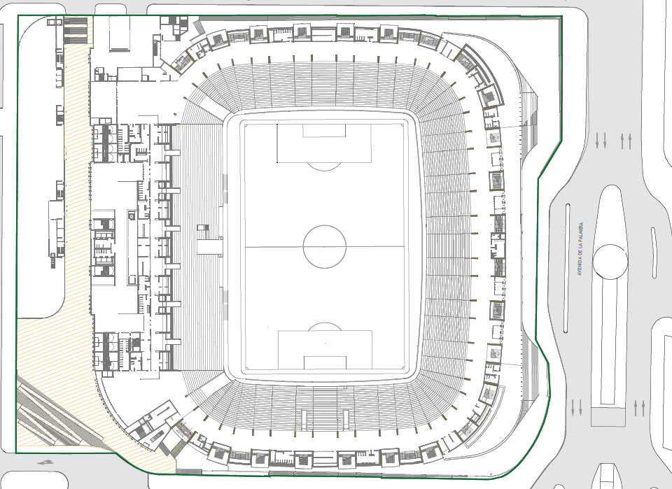 De esta manera, el club verdiblanco podrá ganar para el Villamarín cerca de 400 m2 por la calle Iguazú y algo menos por la avenida Padre García Tejero, ya que en esta vía pública la fachada Norte del coliseo deportivo se unirá a la de la mole anexa. Ésta tendrá un vuelo similar al considerarse que su muro formará una continuidad con el recinto futbolístico.