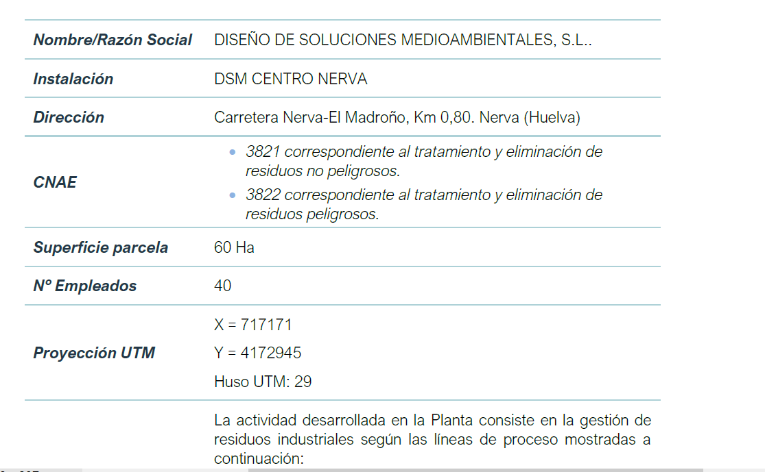 La empresa gestora del vertedero de residuos industriales de Nerva, Diseño de Soluciones Medioambientales (DSM), afirma en su solicitud a la Junta de Andalucía de modificación sustancial de la Autorización Ambiental Integrada del mismo que su nuevo proyecto -implicaría la construcción de diversas plantas de tratamiento de residuos sólidos y líquidos- supondría un beneficio para la economía local.