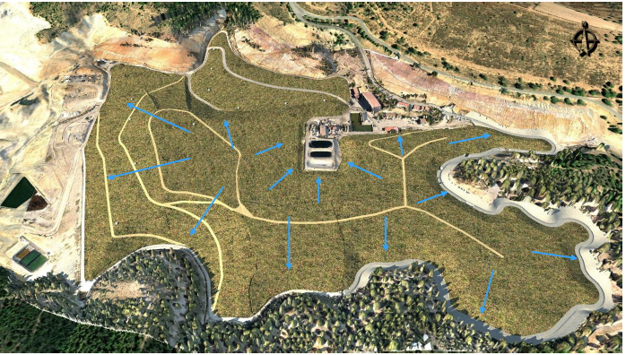 La imagen refleja el problema de integración paisajística que se produciría al cierre del vertedero si se siguiera con el modelo de explotación actual, ya que quedarían islas independientes con claras discontinuidades entre ellas