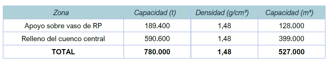 -En el caso de la explotación del vaso de residuos no peligrosos, paralizada en la actualidad hasta la aprobación del nuevo modelo de explotación, aún quedan por aprovechar un total de 780.000 toneladas de residuo a depositar. En términos de volumen, y considerando una densidad media estimada, la capacidad restante por aprovechar en el vaso de residuos no peligrosos es de 527.000 m³.