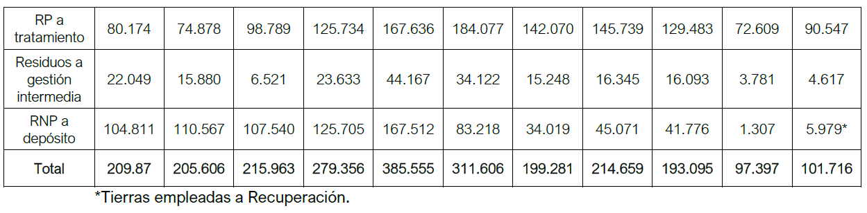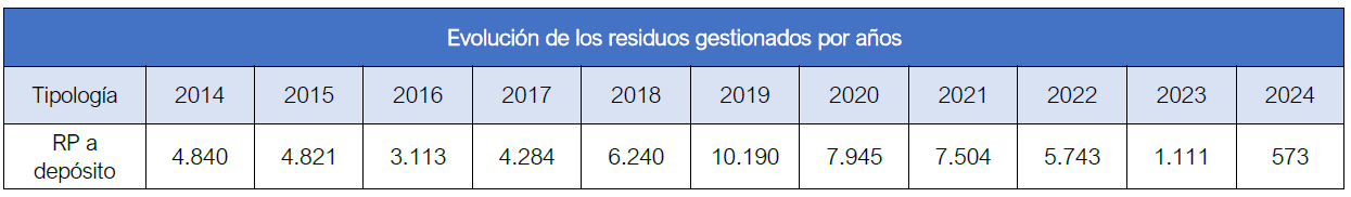 El volumen de residuos gestionado en las instalaciones en los últimos años ha sido el siguiente:
