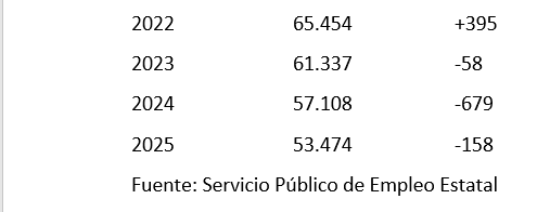 El paro interanual, de julio de 2024 a julio de 2025, ha pasado de 57.108 desempleados a 54.474, una bajada de 3.634 (-6,36%).