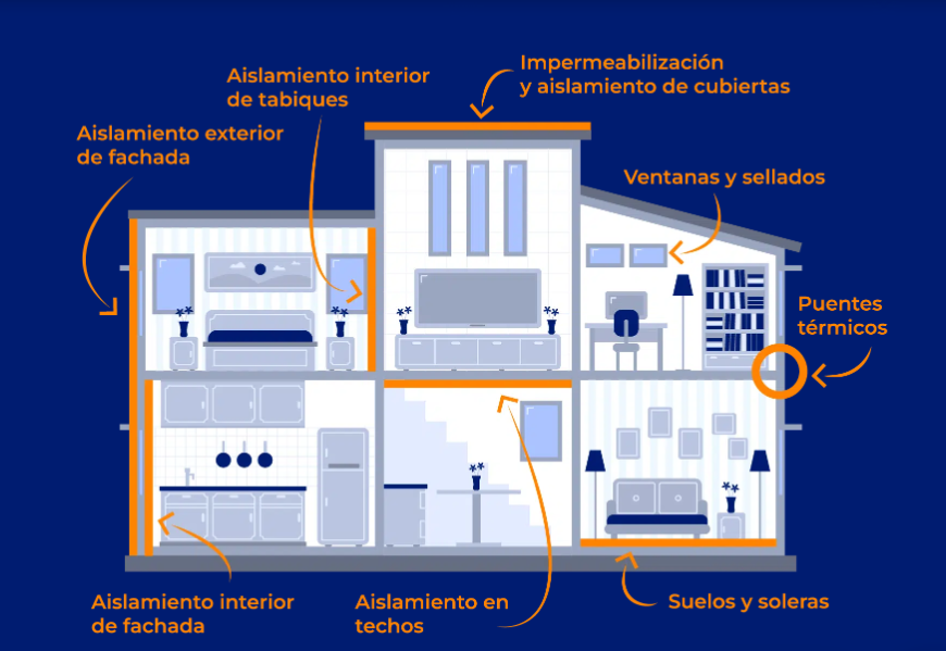 Esquema de la rehabilitación energética de un edificio