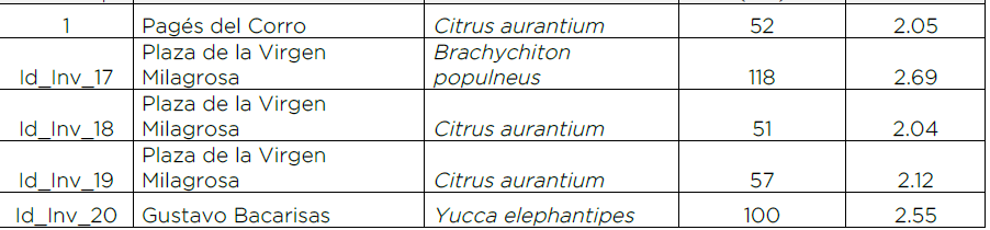 Los ejemplares que se han considerado en el ámbito del estudio son los árboles