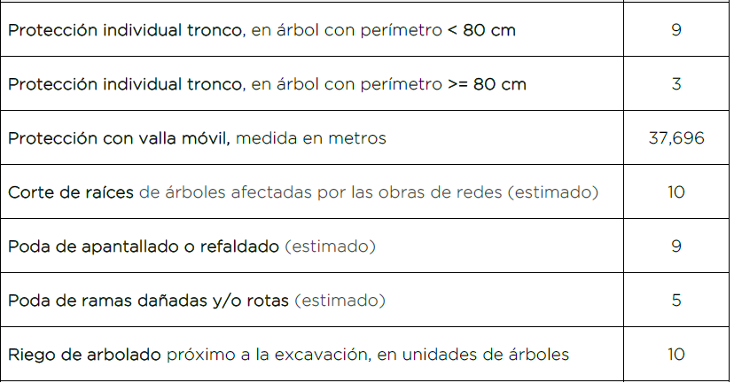 Dada las características de la obra y trazado de las excavaciones, en general no se prevé que se produzcan interferencias entre las copas de los árboles y la circulación de vehículos, si bien, se han valorado 9 unidades de podas por si hubiese ramas bajas que interfieran con los trabajos. Solo se realizarán si resultan estrictamente necesarias, y en cualquier caso, deben ser solicitadas al Servicio de Parques y Jardines y actuar siguiendo sus indicaciones.