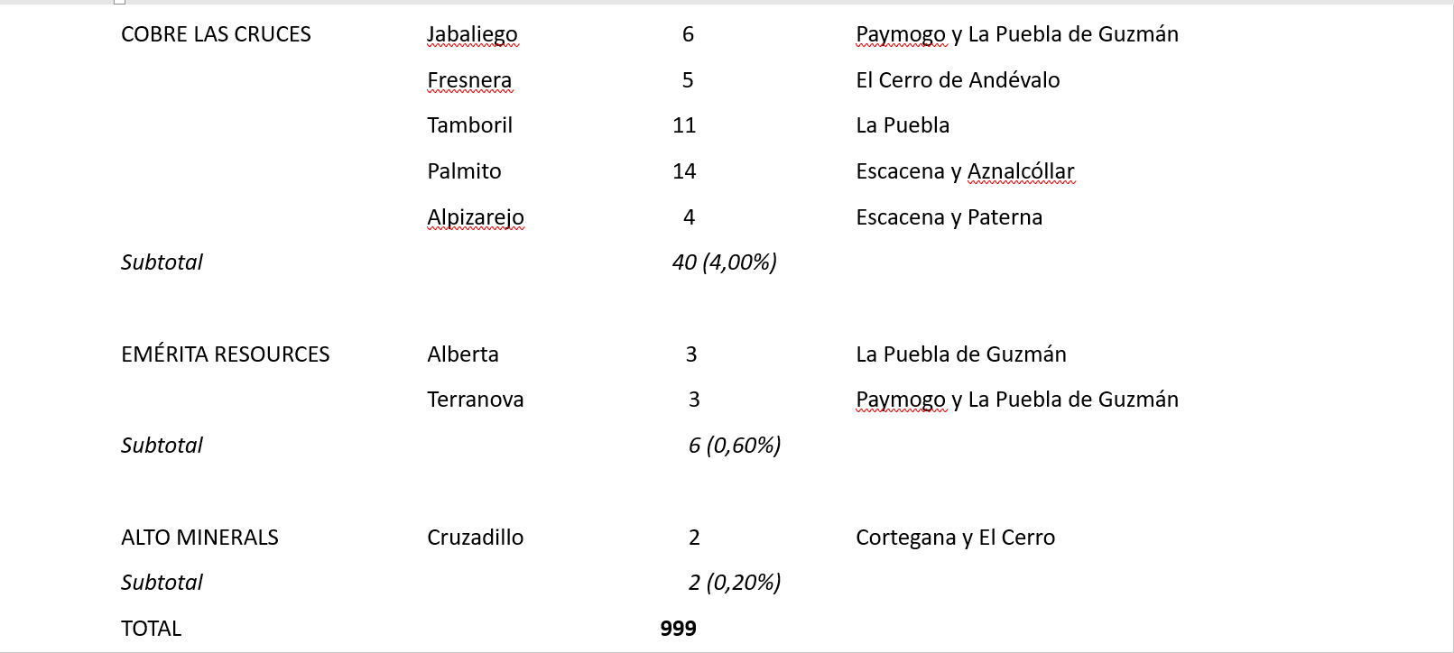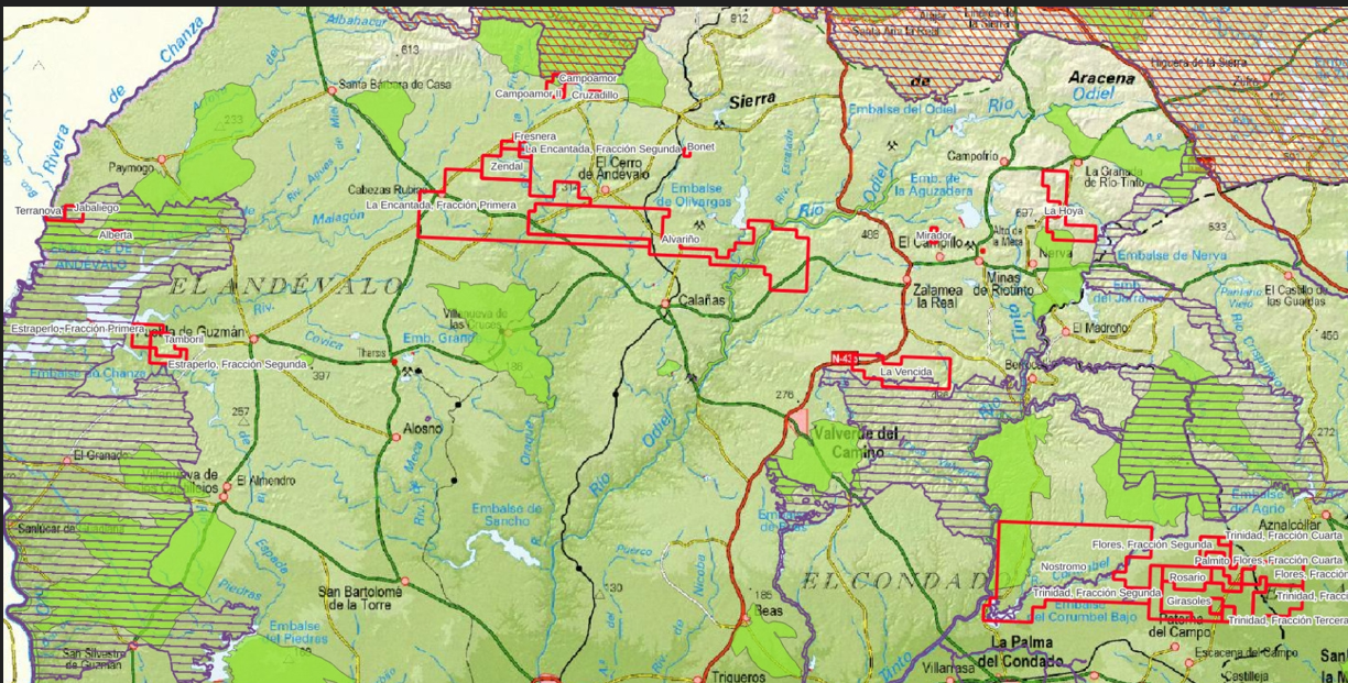 Los verdes destacan que la superficie autorizada se suma a la ya extensa área degradada por la actividad minera en Huelva y afecta a los municipios de Almonaster la Real, Berrocal, Cabezas Rubias, Calañas, Campofrío, Cortegana, El Almendro, El Campillo, El Cerro de Andévalo, Escacena del Campo, La Granada de Río-Tinto, La Palma del Condado, La Zarza-Perrunal, Manzanilla, Nerva, Paterna del Campo, Paymogo, Puebla de Guzmán, Sanlúcar la Mayor, Villalba del Alcor y Zalamea la Real. En Paterna del Campo las prospecciones mineras afectarán prácticamente a todo su término municipal, y en Escacena del Campo, casi a la mitad.