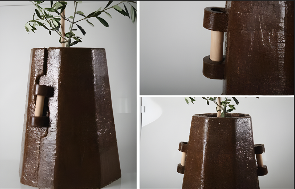 Al mismo tiempo, los agricultores necesitan protectores que resguarden a los olivos jóvenes de depredadores, el calor y el viento, pero los sistemas tradicionales son difíciles de mantener y suelen estar hechos de plásticos no biodegradables, con lo que aumenta el impacto ambiental.