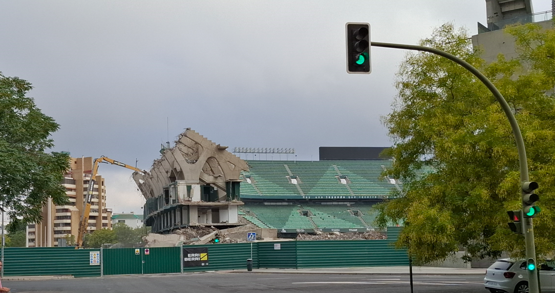 La empresa navarra Erri Berri, responsable de la demolición, afirma en su página oficial que el principal desafío técnico en el caso de instalaciones deportivas como el estadio bético es que son infraestructuras de grandes dimensiones en tejidos residenciales. Además, esconden en muchas ocasiones un valor emocional para la sociedad.