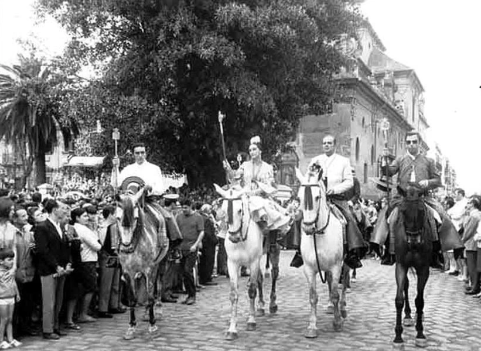 Los peregrinos camino del Rocío pasan delante del ficus en esta antigua imagen publicada por José Elías en su blog ‘Jardines sin fronteras’