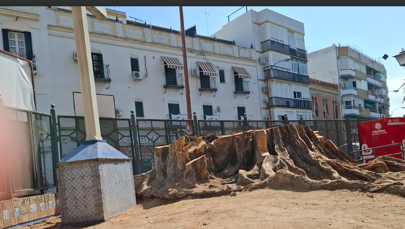 El Servicio de Parques y Jardines del Ayuntamiento de Sevilla ha dejado definitivamente reducido a un mero tocón de más/menos un metro de altura lo que quedaba del tronco del centenario ficus de San Jacinto tras la salvaje mutilación a que fue sometido en agosto de 2022, con lo que el barrio de Triana pierde uno de sus símbolos y la parroquia de San Jacinto logra, por fin para sus intereses, la eliminación de este árbol único.