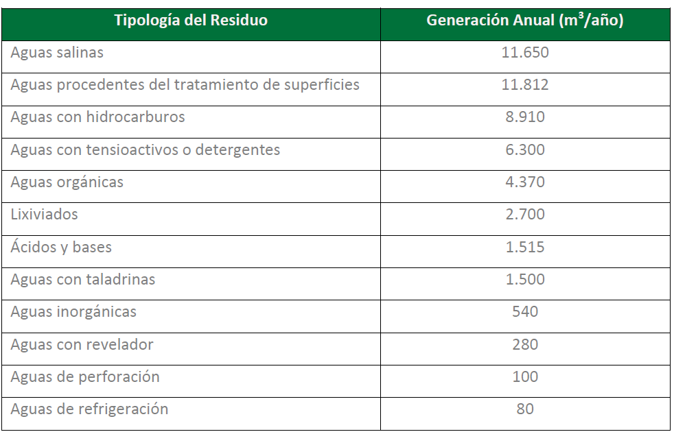 En el punto referente a los residuos líquidos generados en Andalucía, en el proyecto se adjunta una tabla por tipología de los mismos analizado por DSM, en la que no se incluyen muchos de los sectores industriales como la industria agroalimentaria vinculada al aceite de oliva o a productos cárnicos curados, pero da una clara idea de la necesidad de plantas de tratamiento para este tipo de residuos: