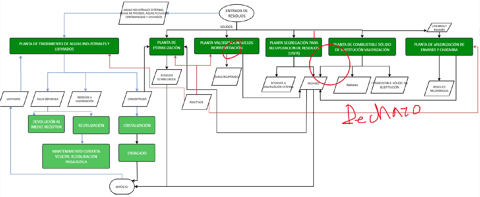 -Dotar a la planta de capacidad holgada para tratar todos los lixiviados generados en la instalación, y a aguas industriales externas implementando procesos de recuperación.