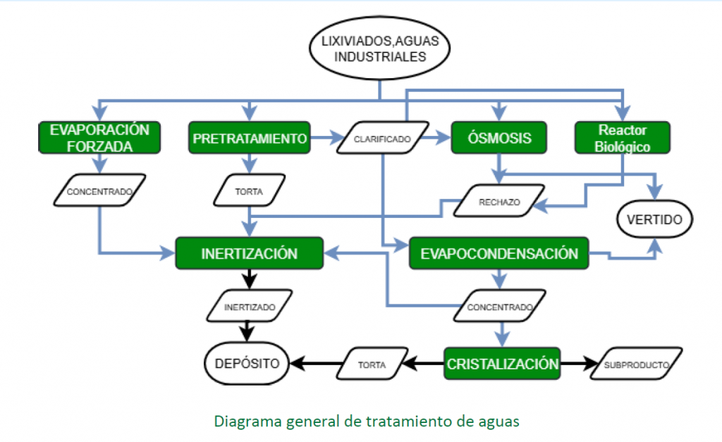 -Poder hacer frente al tratamiento de lixiviados en las instalaciones en las fases de post clausura, con menor cantidad de agua, pero más complejas.