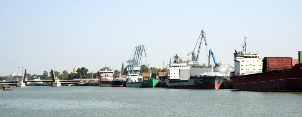 Operativa portuaria en el muelle de Tablada