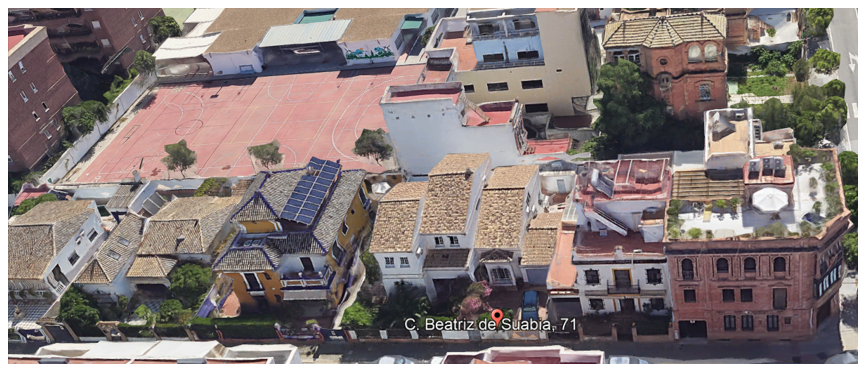 dato al respecto. No obstante, en una fotografía aérea de 1954 se observan varios edificios de la misma tipología en la calle Beatriz de Suabia, los correspondientes según la numeración actual a los números 63 a 71, si bien con la diferencia de que el del número 71 es de cubierta plana en su totalidad tal como puede verse en la imagen.