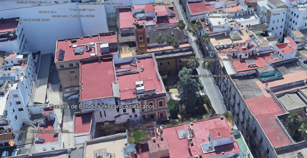 Vista satelital de la Escuela de Estudios Hispanoamericanos, en la calle Alfonso XII