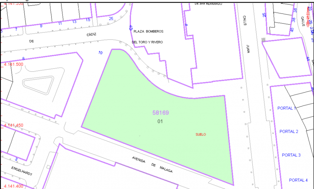 Se trata de una parcela de 7.065 m2, sin edificar, vallada y cerrada en todo su perímetro, con cerramiento de vallado metálico y defensas parciales de bloques de hormigón. Dispone de puertas para el acceso rodado por la avenida de Málaga. Su valor catastral es de 4.724.741,44 €