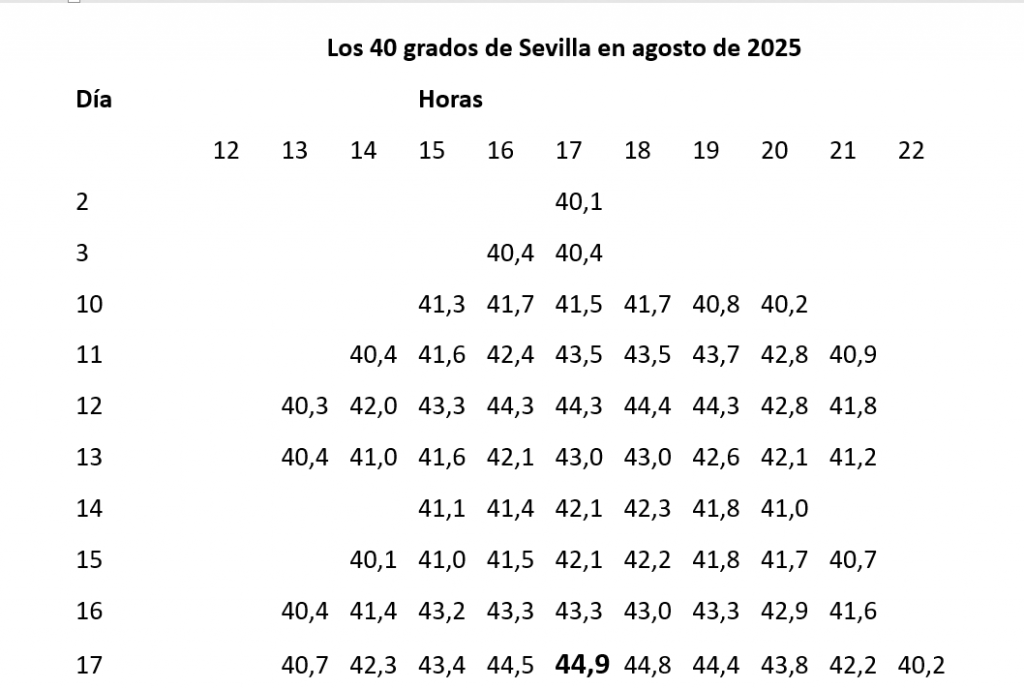 ¿Qué habría ocurrido en Cracovia si en agosto de 2023 se hubieran registrados las temperaturas máximas superiores a 40 grados que se han registrado en Sevilla en agosto de 2025? ¿Y qué no se ha hecho en Sevilla en tal sentido y con esas temperaturas superiores a 40º el pasado agosto en comparación con lo decidido hace dos años en Cracovia con poco más de 30º?