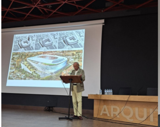 –Nuevo estadio Benito Villamarín y la mole anexa para usos terciarios: el equipo redactor del Estudio de Ordenación declinó la invitación a participar en la Jornada y Rafael Herrera, arquitecto, asumió la defensa de las fortalezas del proyecto. Destacó la