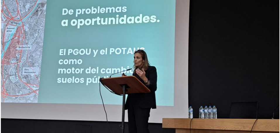 Le dio la réplica Ángela Lara, profesora de la Universidad de Sevilla, que hizo un análisis de la situación del mercado de la vivienda en Sevilla, destacando que en este aspecto las previsiones del PGOU no se han cumplido; que el declive demográfico de Sevilla no es porque no se construyan viviendas, ya que Sevilla perdió 23.000 habitantes en un periodo (2006-2022) en el que se construyeron 22.000 viviendas. Destacó que el Cortijo del Cuarto no es un solar, no es un espacio vacío o abandonado, es un territorio con numerosas funciones ecosistémicas: refugio de avifauna, tanque de tormentas en