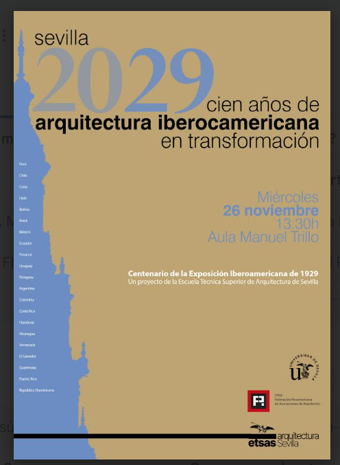 El aula Manuel Trillo de la Escuela Técnica Superior de Arquitectura de la Universidad Hispalense acogerá el próximo miércoles 26 de noviembre (2025) a las 13:30 horas, el acto de presentación del proyecto ‘Sevilla 2029. Cien años de arquitectura iberoamericana en transformación’.