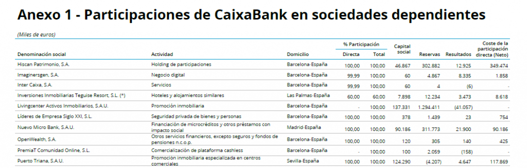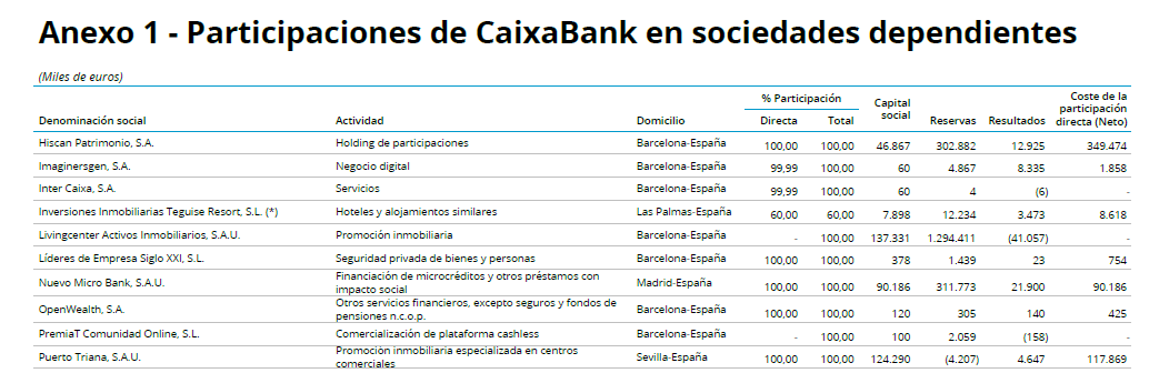 Las cifras de Puerto Triana en el Informe Anual 2024 de Caixabank (última línea)