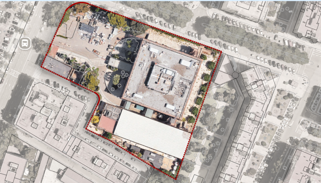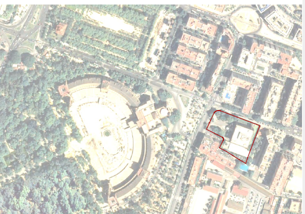 Delimitación de la parcela objeto del Estudio de Ordenación, frente a la Plaza de España