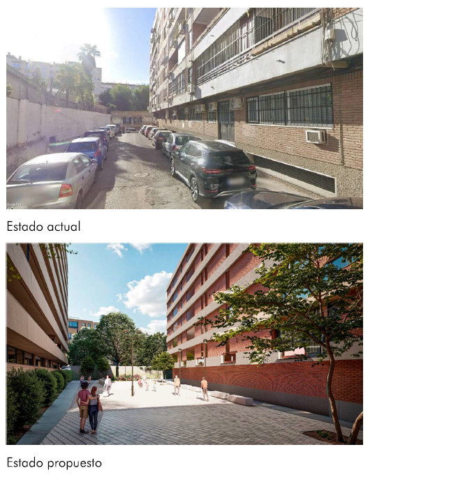 Esta intervención dará lugar a un ensanchamiento del viario o la creación de una plaza pública, contribuyendo a la dignificación y funcionalidad peatonal de un eje actualmente infrautilizado. De manera complementaria, la actuación permitirá mejorar la percepción y la imagen urbana de este espacio, integrándolo de forma más armónica en la trama urbana y reforzando su carácter público dentro del tejido consolidado.