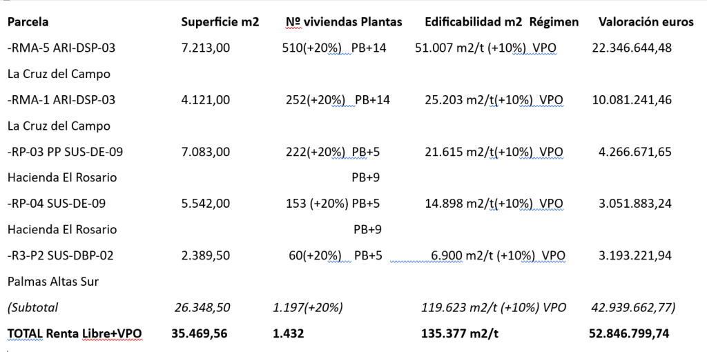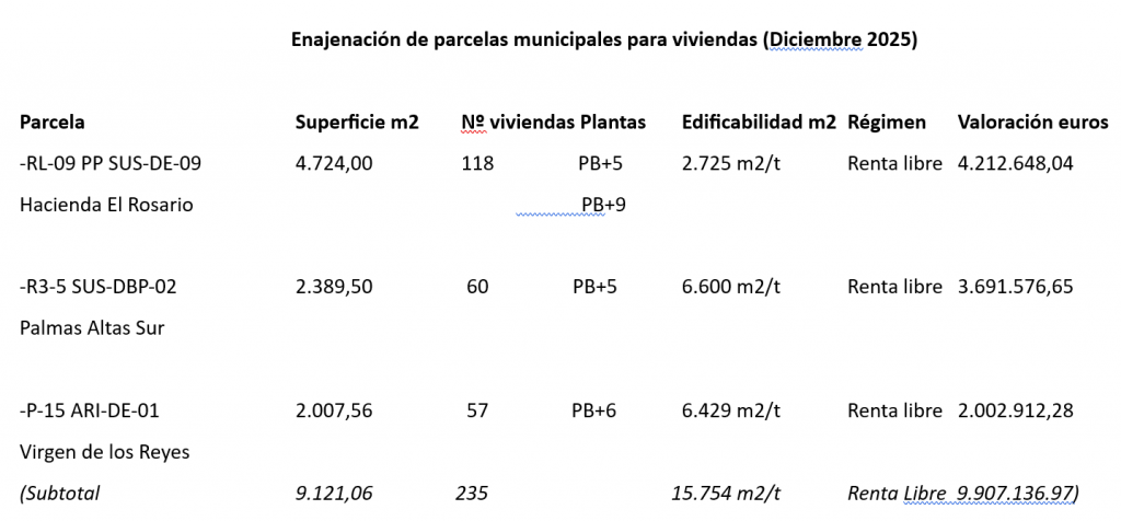 La venta de estas parcelas está contemplada en el programa de ingresos del Plan de