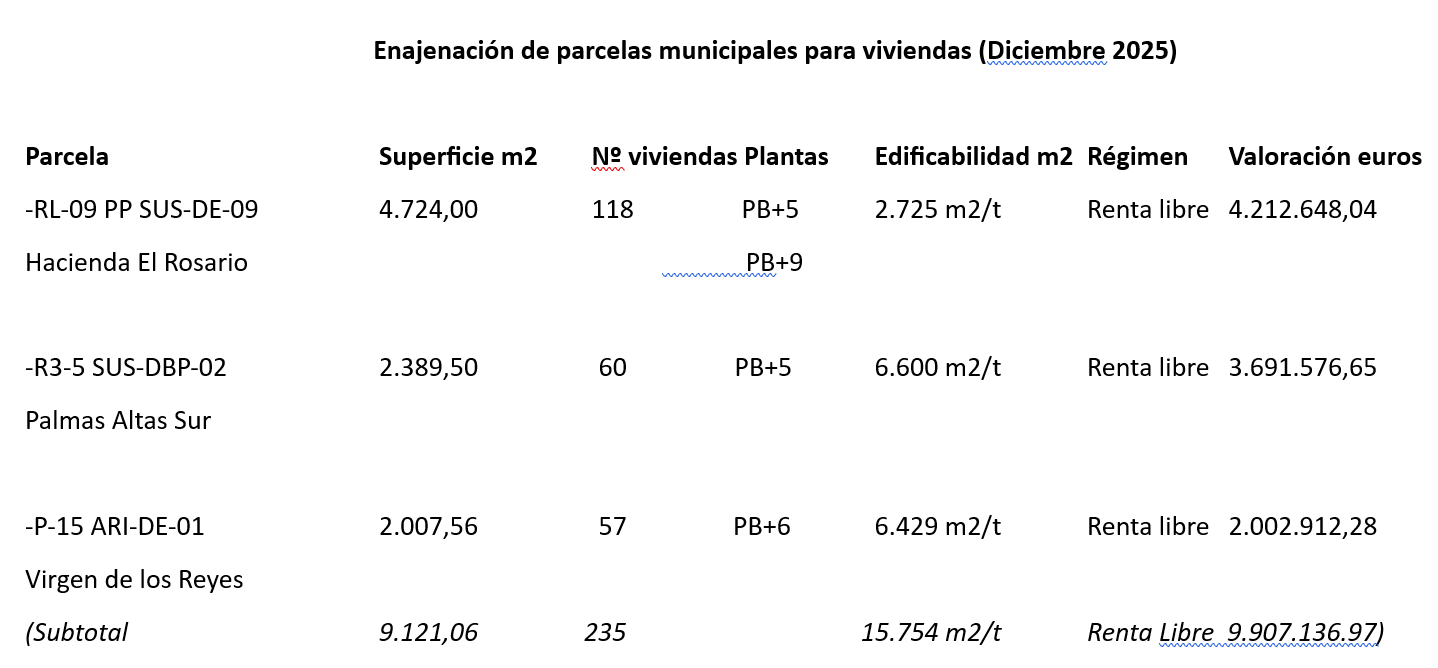 La venta de estas parcelas está contemplada en el programa de ingresos del Plan de