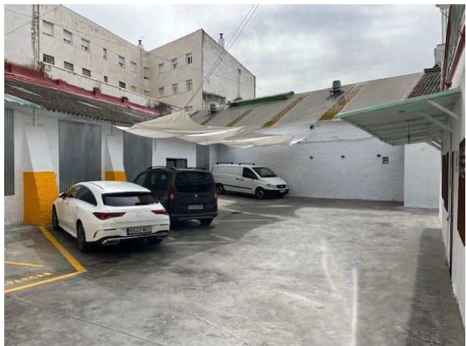 Asimismo, se incluyen vistas del área de aparcamiento interior, donde se aprecia un suelo de hormigón pulido, señalización vial moderna y pilares reforzados que no conservan el esquema estructural histórico que se pretendía proteger originalmente.