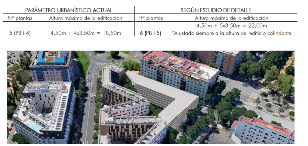 El grupo ABU propone en el «Estudio de Detalle» aumentar la altura máxima permitida de 5 plantas (PB+4) a 6 plantas (PB+5). En el documento asegura que la propuesta no modifica el uso del suelo ni la edificabilidad total permitida por el PGOU, y que cumple con la Ley 7/2021 (LISTA) de Andalucía. Es un ejemplo práctico de cómo se están utilizando los instrumentos de la nueva ley urbanística andaluza para agilizar cambios en el planeamiento detallado.