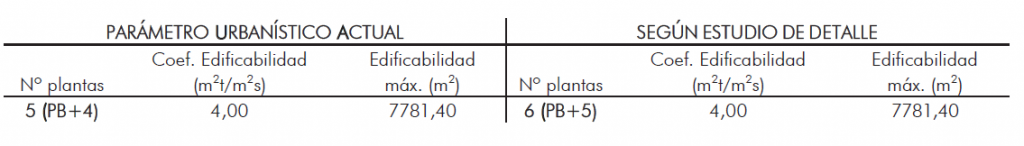 -Misma superficie, más altura: Aunque el edificio gana una planta (pasa de 5 a 6), la superficie edificable total se mantiene estrictamente en 7.781,40 m².