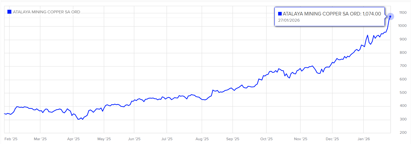 Atalaya es un productor europeo de cobre «pure play» que opera el Proyecto Riotinto desde 2016. En 2025, la compañía produjo 51.139 toneladas de cobre y ha previsto una producción de 50.000 a 54.000 toneladas para 2026