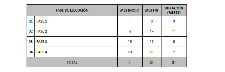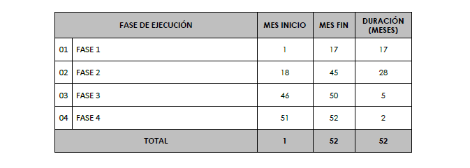 En la siguiente tabla Ineco reflejó el mes inicial, mes final y la duración de cada una de las fases previstas:
