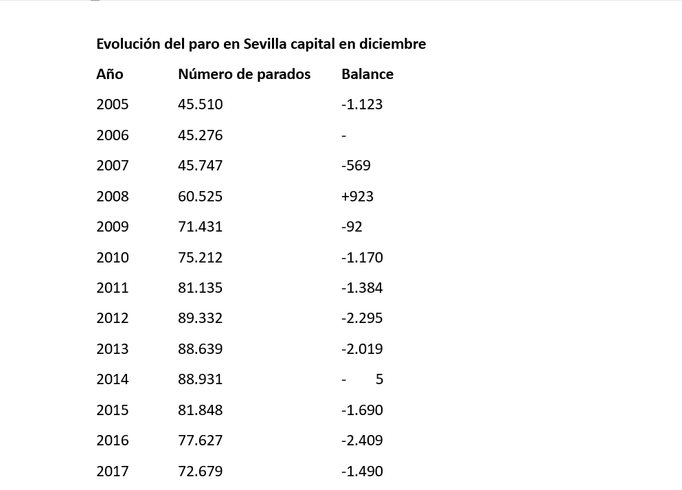 Por lo que se refiere al mandato de José Luis Sanz como alcalde de Sevilla, tomó posesión con 61.395. Por tanto en este periodo han salido de las listas del paro 9.797 personas (-15,95%).