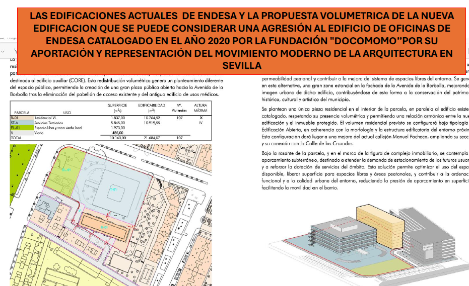 La sugerencia de Urban Century 29 al Avance del Estudio de Ordenación sometido a información pública por la Gerencia de Urbanismo es que se mantenga la ordenación urbanística actualmente existente en esta parcela de la avenida de la Borbolla y se modifique el nivel de la protección del edificio (la sede de Endesa) añadiendo a la catalogación existente en el Plan General de Ordenación Urbana (PGOU) una más para edificios que representen el movimiento moderno en la arquitectura de Sevilla.