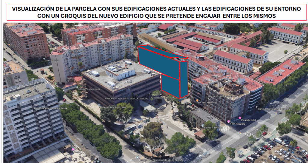 La asociación ha elaborado un argumentario esencialmente visual para mostrar el impacto que tendría este proyecto de torre de nueve plantas junto a la sede de Endesa en la avenida de la Borbolla, tal como muestran las siguientes imágenes: