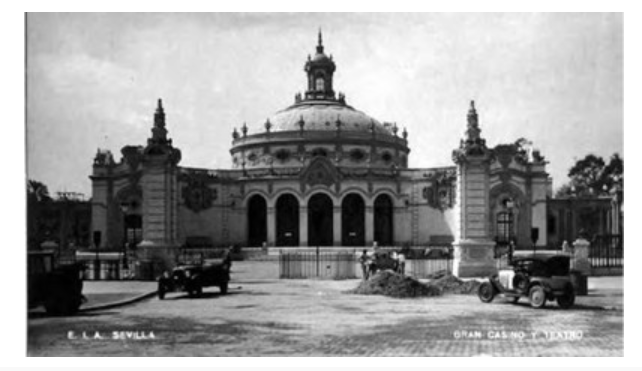Imagen de la entrada al Casino de la Exposición en los años 30 del pasado siglo, con verja de hierro en el centro