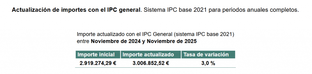 Si se hubiera actualizado el valor del suelo conforme a la inflación registrada desde noviembre de 2024, según la fórmula del Instituto Nacional de Estadística aplicable al caso, el resultado habría sido el siguiente:
