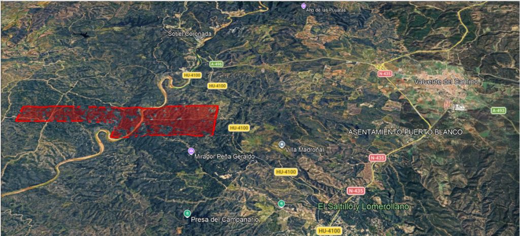El área de investigación está definida por siete vértices en el sistema de referencia ETRS89, muy cercana al yacimiento de Masa Valverde.