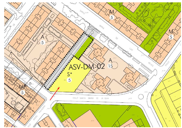 El plano refleja la actuación simple de viario denominada ASV-DM-02 Santa María del
