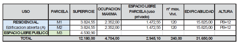 –Distribución en bloques: Las viviendas se repartirán equitativamente en dos parcelas o manzanas lucrativas (denominadas M1 y M2), con 120 viviendas en cada bloque.