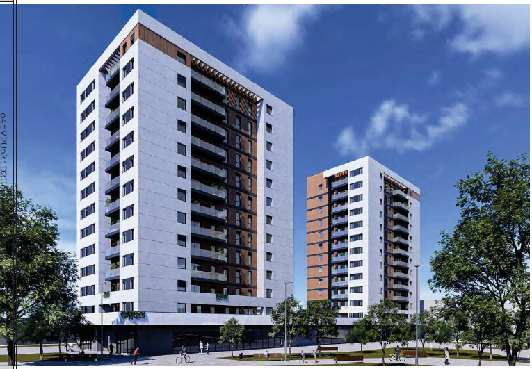 –Altura y vistas: Las viviendas se distribuirán a lo largo de 13 plantas (Baja + 12), lo que permitirá a los residentes de las plantas superiores tener una posición dominante sobre el entorno de equipamientos y zonas deportivas del Polígono de San Pablo.