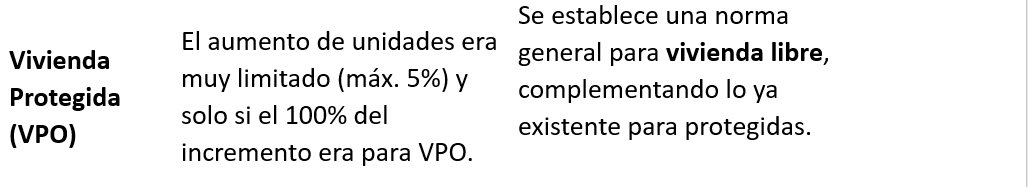 • Procedimiento ágil: El incremento del número de viviendas se podrá obtener directamente mediante la licencia de edificación, sin necesidad de tramitar complejas modificaciones de los instrumentos de planeamiento (como Planes Parciales o Estudios de Ordenación), lo que ahorra tiempo y costes burocráticos.